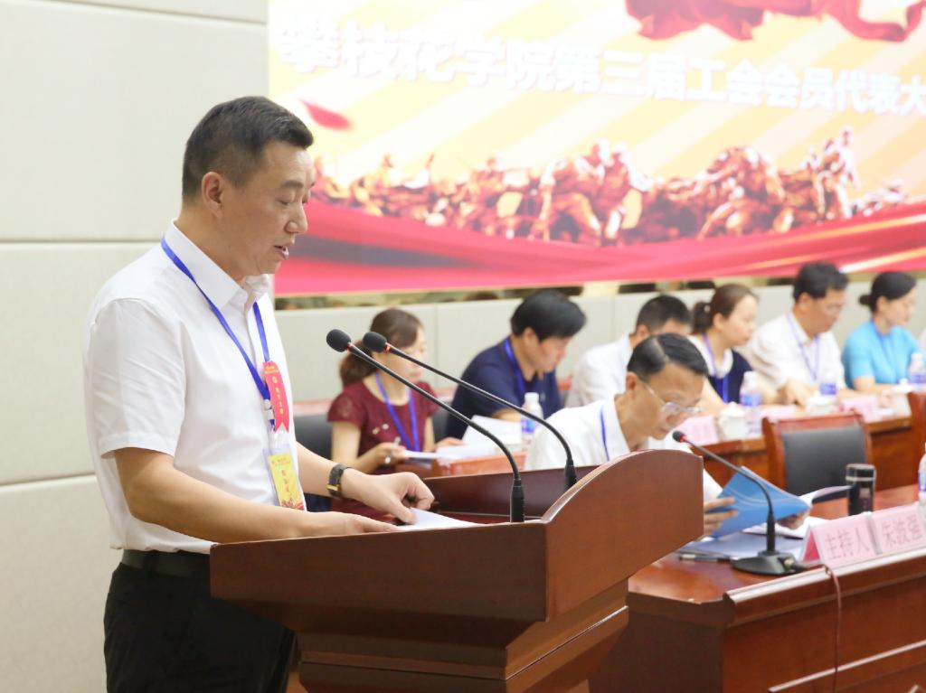 胥刚作题为《凝心聚力、振奋精神,为全面建设和谐、美丽、幸福攀大,全面开启建设应用型一流大学新征程而努力奋斗》的工会工作报告。报告回顾总结了第二届工会委员会的工作,明确了未来五年工会工作的总体要求和主要任务。报告指出,八年来,学校工会不断加强对教职员工的思想政治引领,切实增强工会工作的政治性;积极推进学校民主政治建设,共同营造风清气正的良好校园生态;不断加大服务教职员工力度,大幅提升教职员工存在感、获得感、幸福感;发展繁荣教职员工文化,促进教职员工身心健康,明显增强工会吸引力凝聚力;不断加强自身建设,不断提高工会工作水平。报告强调,未来五年,学校工会工作将加强政治思想引领,不断增强工会组织的政治性;围绕中心服务大局,团结动员广大教职员工以主人翁姿态建功立业,不断增强工会组织的先进性;深入开展维权服务工作,进一步提升教职员工存在感、获得感、幸福感,不断增强工会组织的群众性;进一步加强工会自身建设,不断提高工会服务教职员工的能力。