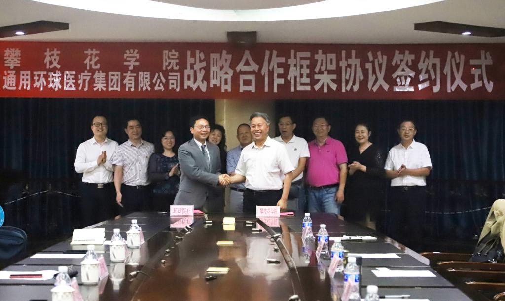 四川环康医院管理有限公司总经理于超,攀钢集团总医院党委书记刘川,攀钢集团总医院党委副书记、院长王平与我校党政办公室、基础医学院、康养学院负责人也参加了签约仪式。