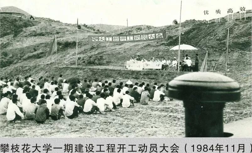 1984918日,攀枝花大学首届学生如期开学。当时的校园还只是一张图纸。学校教学、实验、办公、学生住宿、教师住宿均借用市八中、市交通四中、市酿造厂场所,师生用餐和饮水借用市委食堂,一所地方短期职业大学就这样开办了。此后,攀大建设者以神圣的使命感和满腔的热情,以惊人的毅力和坚强的意志克服种种困难,引资筹款、推山填谷,逐渐把干旱酷热、人迹罕至的荒山建设成为风光秀美的校园。