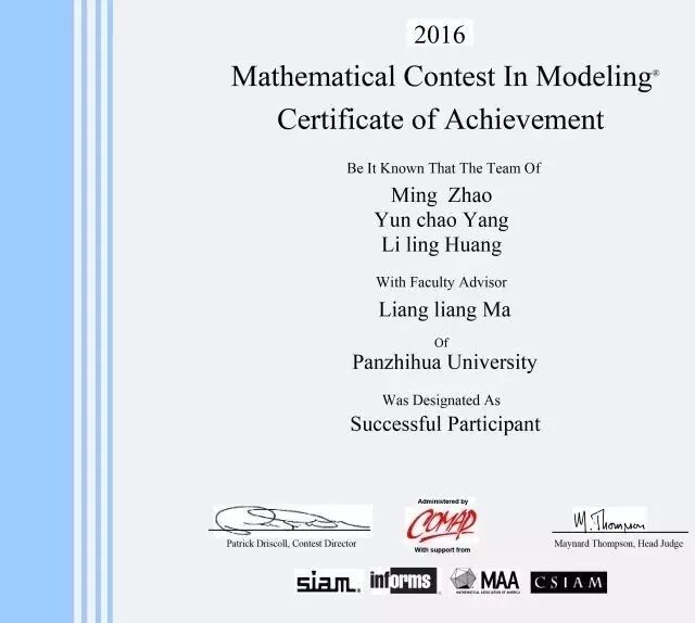 我校学子获国际数学建模比赛一等奖