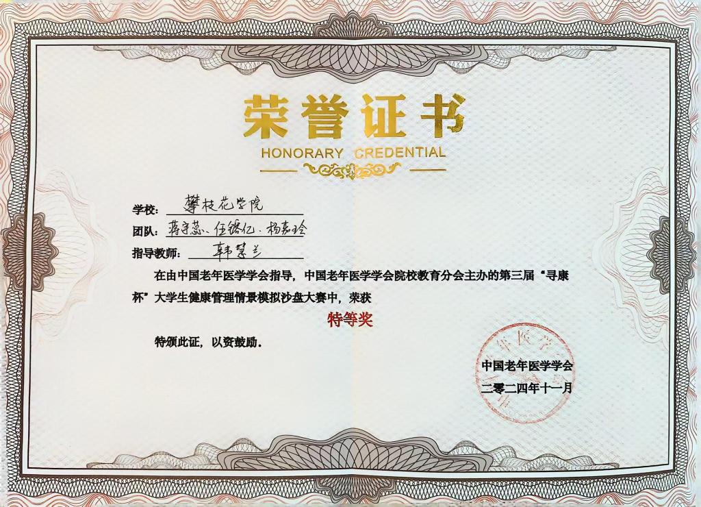 学院坚持学科引领、科研赋能,推动学科科研工作提质增效。学科专业建设取得关键突破,医养照护与管理专业为全国首批、全省唯一职教本科新专业,获批校级“四新”专业建设综合改革项目;成功申报校级一流专业、课程思政示范专业各1个,省、校级一流课程及课程思政示范课程各1门,立项省、校级教研教改项目8项,获校级教学成果奖4项。护理专业硕点建设基本完成,护理学专业认证申请连续3年提交,专业标准化建设迈入关键阶段。科研创新平台持续夯实,制定《康养学院科研工作实施方案》,组建院内科研团队3个、校级科研团队1个。与成都医学院等单位深度合作,在多个省级以上平台立项课题36项,攀枝花市特色生物医药重点实验室拟立项课题10项。科研成果丰硕,“十四五”期间发表学术论文134篇(SCIEI、中文核心28篇),出版专著和教材27行业影响力持续提升,推荐3名高层次人才参与全国康养类国家标准调研与起草,建成“攀枝花市医疗护理员培训机构”等5大核心平台,成为地方康养产业标准化建设与人才培训的重要依托单位。