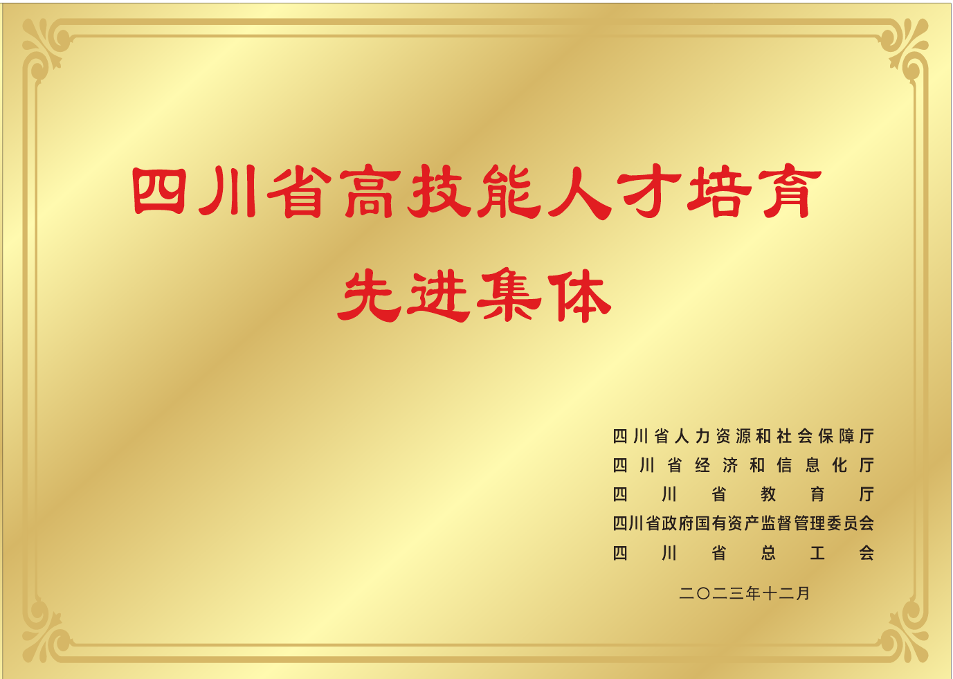 图5  荣获四川省高技能人才培育先进集体