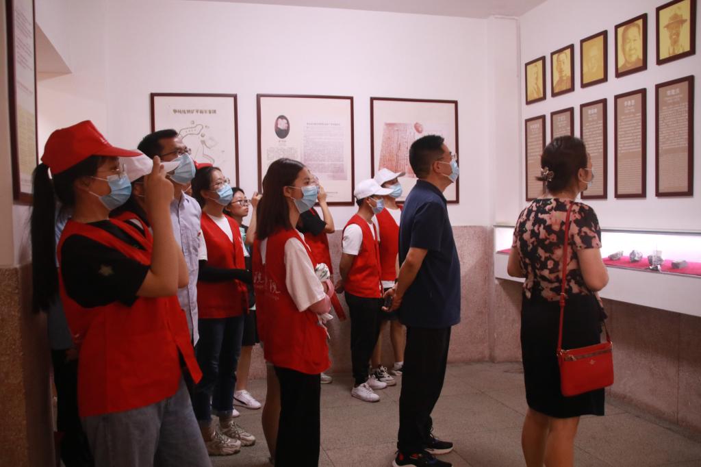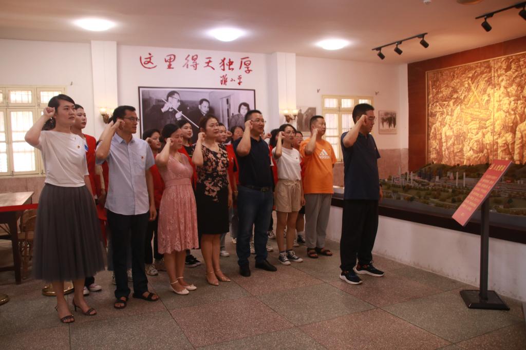 在解说员的带领下,一行人认真学习参观了绝密室、矿样室、餐厅以及领导人房间等,一件件珍贵的历史文物、一张张详实的图片资料,生动再现了攀枝花三线建设的奋斗精神。随后,在康养学院党总支书记带领下,党员教师面向党旗,重温入党誓词。