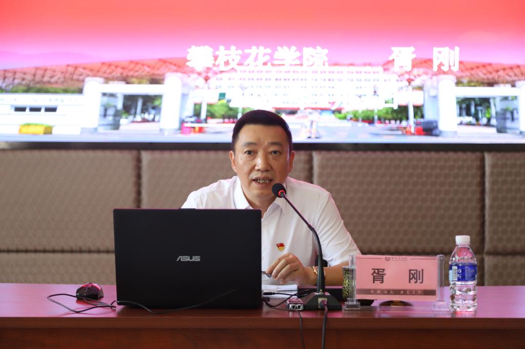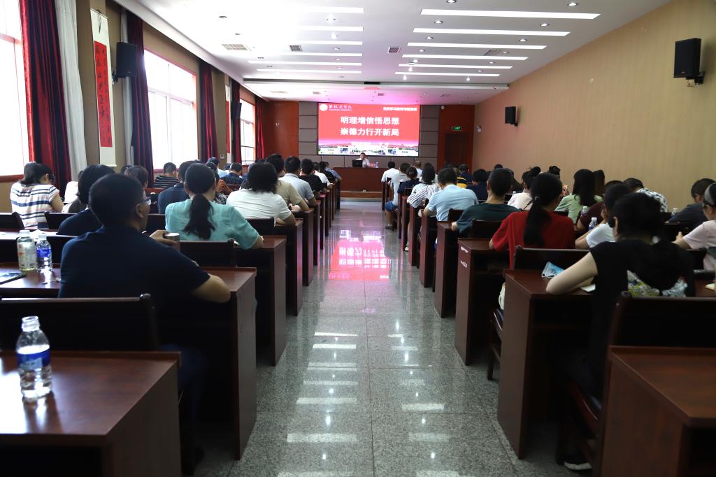 77日下午,党委副书记胥刚围绕学习贯彻习近平总书记“七一”重要讲话精神,以“明理增信悟思想 崇德力行开新局”为题作专题党课,党委宣传部、党委统战部、学生工作部、团委全体人员,文学院、艺术学院领导班子、全体党员教师,各学院分管学生工作领导、学生科长、辅导员参加学习。