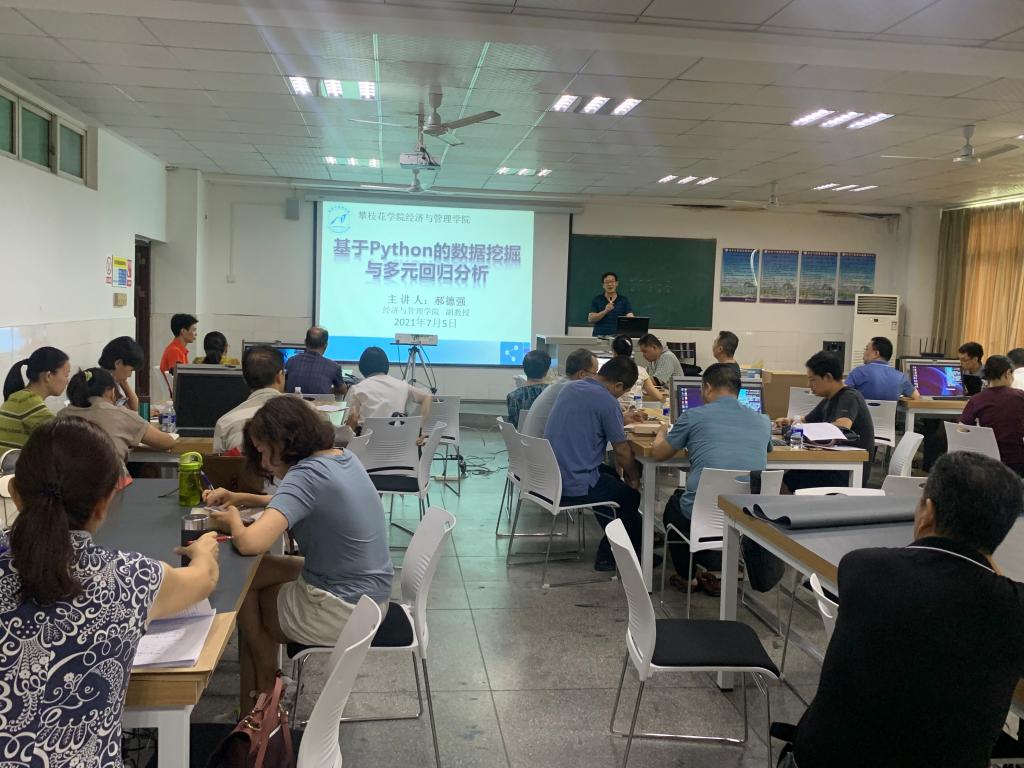7月5日上午,郝德强副教授开展《基于Python的数据挖掘与多元回归分析》的专题讲座。讲座从Python简介、数据挖掘原理与演示、Python多元线性回归分析演示和Python函数与基本语法四个方面进行了深入讲解,在思维上重新塑造老师们对于Python的认知,并从实践层面,向老师们演示了Python的一般操作步骤,对老师们提升运用Python实现数据挖掘及统计分析能力具有重要的意义。