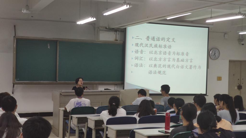 讲座中,蒋莲老师从普通话-现代汉民族的共同语言、普通话的定义、推广普通话的重要意义、计算机辅助普通话水平测试简介、大学生应做推广普通话的先行者、怎样学好普通话等六个方面做了详细的讲解。