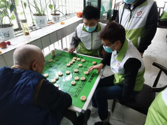 志愿者们陪伴敬老院老人们聊天、下棋、打扫卫生等志愿活动,向敬老院的老人们献上了自己的一份爱心。志愿者还展示了准备的小节目、小游戏等,丰富了老人们的生活,现场充满了大家的欢声笑语。
