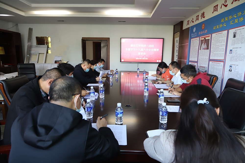 1117日下午,我校统一战线召开专题学习十九届六中全会精神座谈会,学校统战部相关负责人,各民主党派和统战团体负责人参加会议。