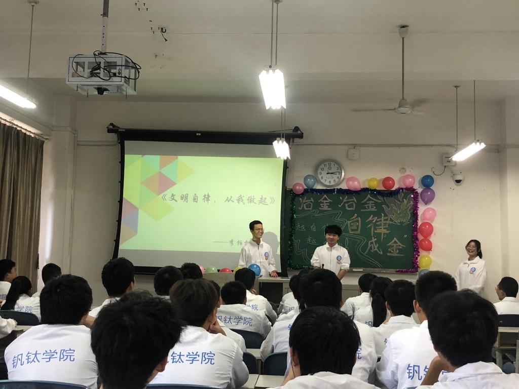 为深入贯彻自律攀大人,人才培养过程一流,深化自律品牌打造,结合学生纪律规矩教育,学校于今年9-11月份组织全覆盖开展了“成就人生从自律开始”主题教育活动。