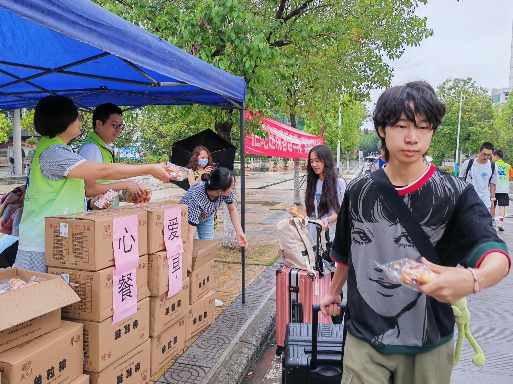 623日是学生离校返乡的高峰期,有20余辆车辆进校接送学生。早上6:30,下着小雨,由二级学院分管学生工作领导、学生科长、保卫处相关人员组成的20余名志愿服务老师,赶到静明湖畔,为返乡学生送上爱心早餐,叮嘱学生返乡途中做好个人防护,帮助行李多的学生搬提行李,组织学生安全、有序登上返乡客车。