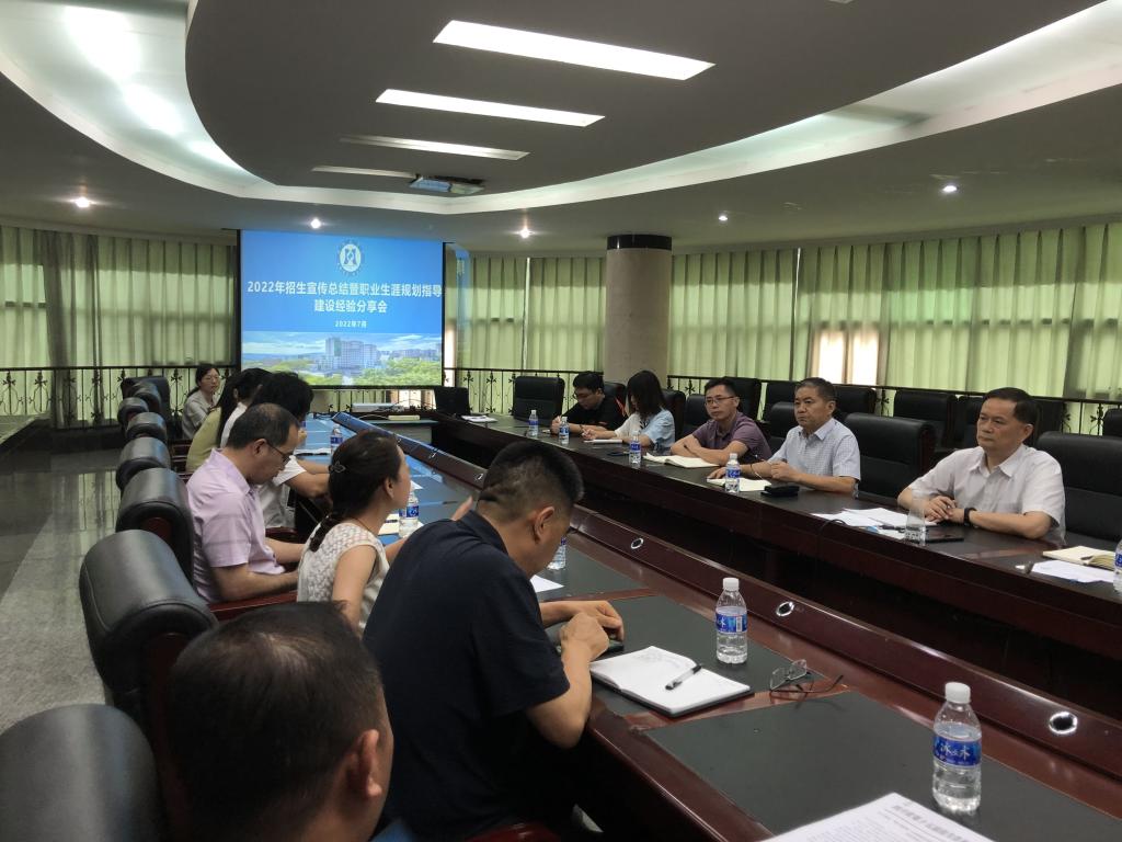 7月5日下午,我校召开招生宣传工作总结暨就业创业指导课建设经验分享会。副校长王兵出席并讲话。11名招生宣传讲师团成员、4名参加“四川省2022年高校就业创业指导金课建设活动”的就业指导教师及招就处全体同志参加会议。