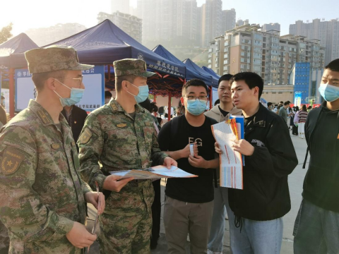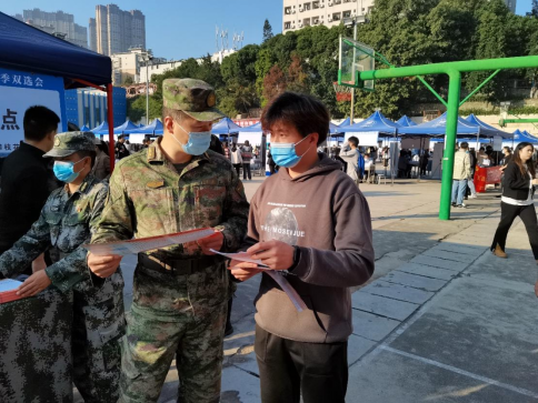 11月10日,在学校篮球场举行2022年秋季毕业生双选会,东区武装部副部长高翔、攀枝花市军分区段参谋和5名现役军人,学校武装部、退伍大学生宣讲团代表们利用双选会设置了征兵工作咨询点,为2023届毕业生发放征兵宣传资料,宣讲征兵政策。2023年春季应征入伍工作正式拉开帷幕。