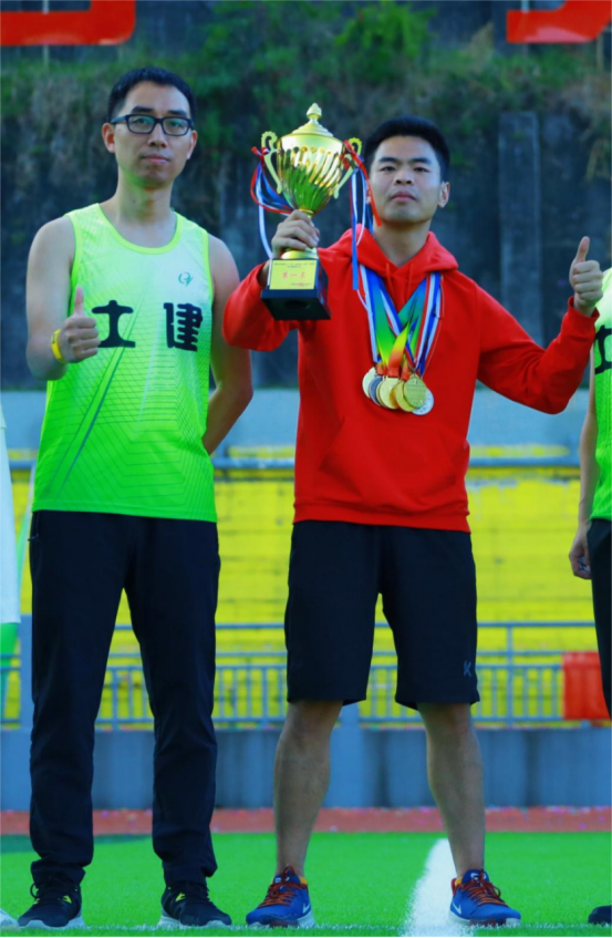 顽强拼搏挑战自我是土建师生的座右铭,大家时刻用这句话激励和警示自己。为全力参加运动会,疫情期间,正在备战考研的2019级土木工程专业王明李同学,坚持在家锻炼,返校后每天晚上10点从图书馆前往运动场坚持训练,在今年运动会学生组男子100米比赛中以11秒28的成绩,打破了尘封7年的校运会记录,并在200米决赛成功卫冕冠军,在4x100米混合接力中带领队员获得第一名在今年运动会首日第一项比赛中19建筑专业学生熊美婷在参加女子100不慎摔倒大腿和胳膊都受了伤,但在随后的4x100米决赛、女子200米比赛中,仍坚持比赛,并取得了优异的成绩。