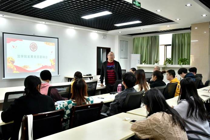 为贯彻落实党的二十大精神,进一步提升学生党员发展质量,11月19日,法学院党委举行了学生党员发展对象答辩会。学院党委领导、组织员、学生党支部书记、学生党员代表和发展对象近30人聆听答辩。