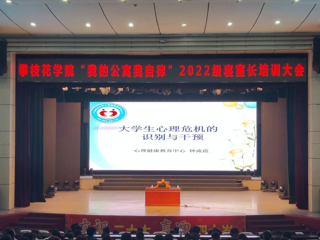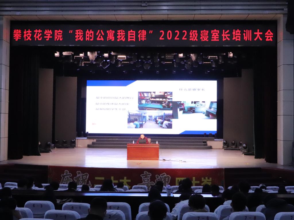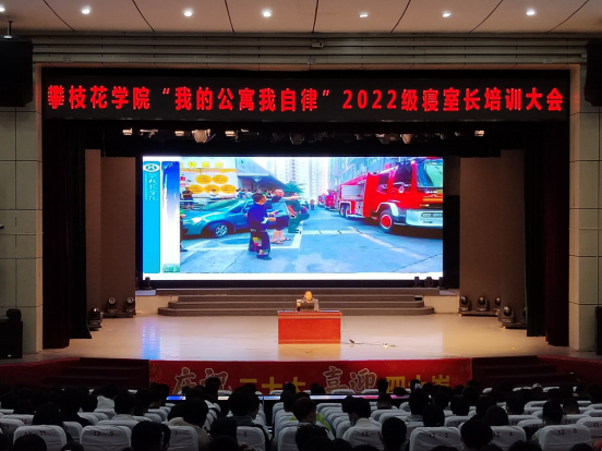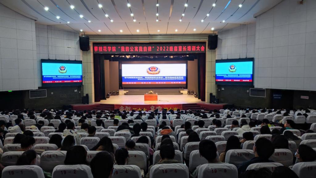 为进一步构建“自律攀大人”学生教育管理服务体系,充分发挥寝室长在学生自我管理、自我服务中的积极作用,围绕“我的公寓我自律”加强公寓中学生的日常思想教育和行为管理, 11月27日,学工部联合保卫处、心理健康中心开展的“我的公寓我自律”2022级寝室长培训大会在会堂举行。各二级学院2022级寝室长及相关辅导员参与了本次大会。