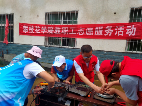 电气学院教职工立足专业特色,学以致用,在校内外常态化开展家电维修志愿服务活动。每年定期在学校学生公寓9号楼设置家电维修现场服务点,组织教职工参加三下乡暑期社会实践活动,到攀枝花市各乡镇(草场乡、大田镇、渔门镇等)开展家电维修志愿服务活动。