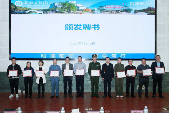 3月16日上午,我校在学术报告厅举行了校外辅导员聘任仪式。校党委副书记胥刚,校外辅导员代表,相关职能部门负责人,各二级学院分管学生工作领导、学生科长、辅导员代表,学生代表参加仪式。