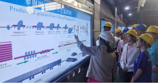 在生产现场,同学们参观学习“象牙微雕钢城”的建造历程轨梁的“品牌故事”以及钢轨从钢坯到钢轨成型的整个流程,见证百米钢轨7分钟铸就下线的“中国速度”。