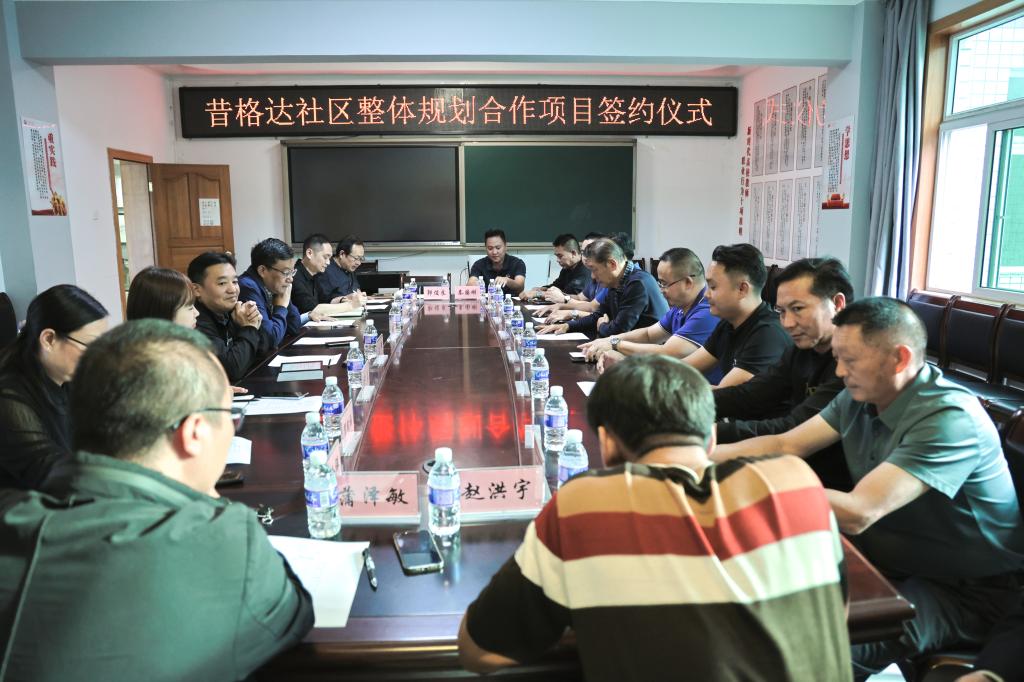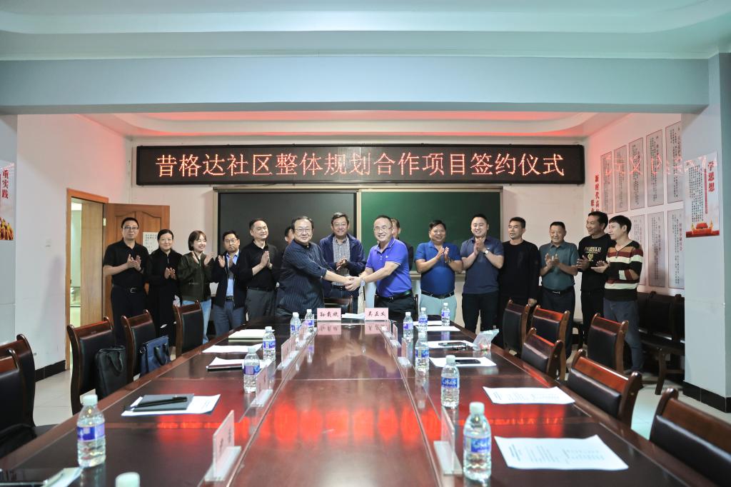10月30日下午,我校与昆明宏业酒店管理有限公司就昔格达社区整体规划设计项目举行签约仪式,党委副书记刘立新出席签约仪式并讲话,昆明宏业酒店管理有限公司投资人童启强一行以及我校教务处、产教融合部、科研处、艺术学院、土建学院相关负责人出席了签约仪式。