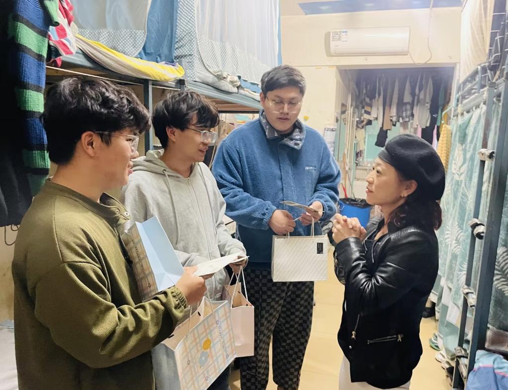 为助力学院2024届考研学子树立积极阳光心态,在备考最后冲刺阶段给考研学子加油鼓劲,12月19日下午,法学院举行助力“温暖传递·研途有你”考研备战送温暖活动。学院分管学生工作领导、学生科负责人和毕业班辅导员深入寝室共同为备考学子们送上了慰问祝福。