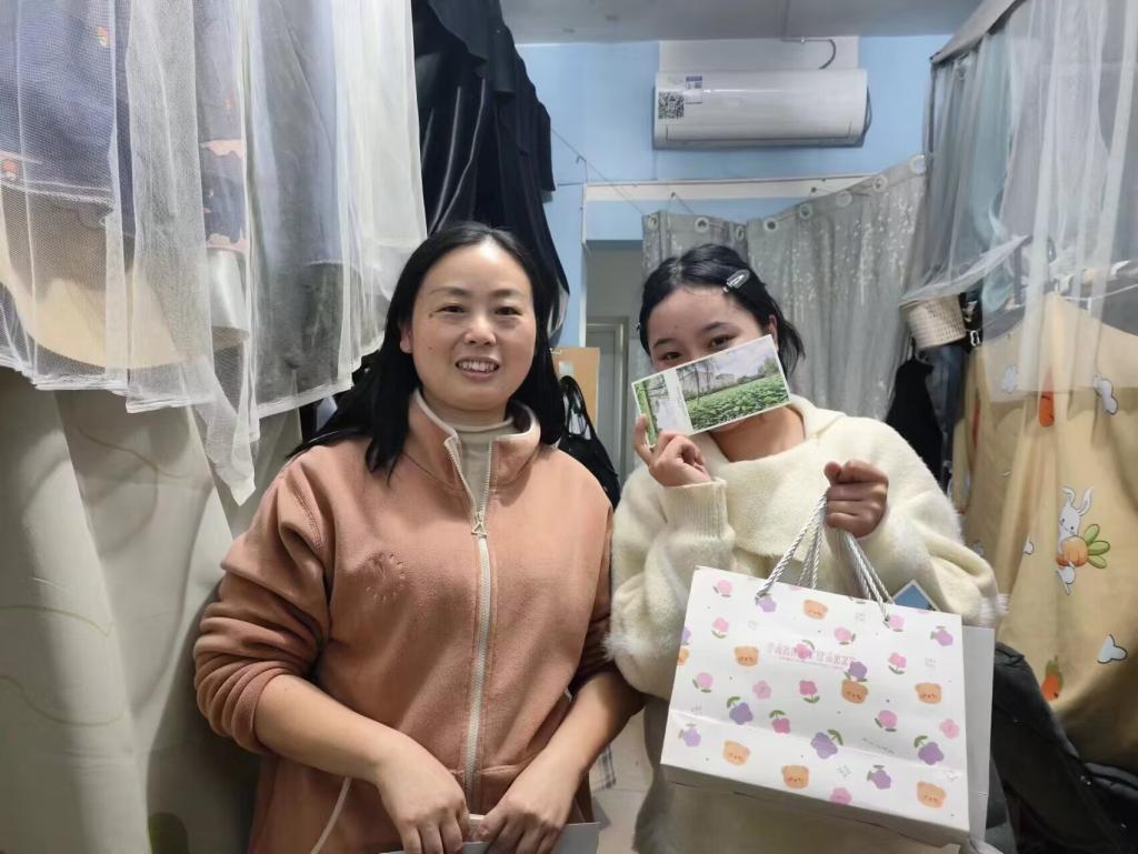 学院老师为考研学生一一分发“暖心礼包”,“礼包”包含寓意万“柿”如意的柿子、全“力”以赴的士力架、运势“旺”达的旺仔和由辅导员署名的专属祝福明信片。同时,老师们还细心询问了备考学子们的复习进度和心理状态,鼓励他们端正心态、克服困难、努力坚持,以必胜的信念面对挑战,以最好的状态迎接考试。