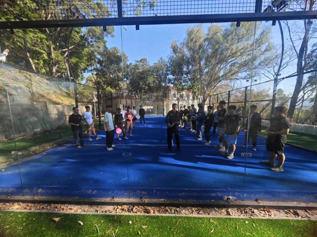活动前,部门全面调研活动路线、场地器材、茶歇、安全预案等,制定了较完备的活动方案,保障活动顺利开展。活动中专业教师针对板式网球的技巧进行指导。参与活动的师生们纷纷表示在公园美丽的自然环境中体验到了新颖体育项目,得到了运动锻炼。