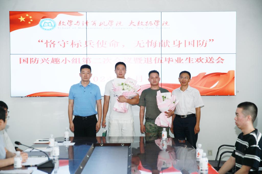 5月11日下午,数计学院举行“恪守标兵使命,无悔献身国防”2024届退役复学毕业生欢送会。学校武装部石金峰,数计学院党委领导、辅导员及全体退伍学生参加会议。会议由学院党委副书记姜承琳主持。