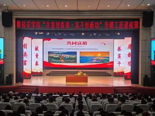 为大力弘扬新时代劳模精神、劳动精神、工匠精神,树立“劳动最伟大,劳动最光荣”的意识,让师生在校园里近距离接触劳动先进,聆听劳动故事,感受并领悟勤勉敬业的劳动精神。5月15日下午学校学生会堂开展“共富献青春实干创新”劳模工匠进校园讲座。国网攀枝花供电公司变电运维三班班长、高级工程师、高级技师,全国能源化学地质系统大国工匠、四川省“五一劳动奖章”获得者胡刚受邀来校开展讲座,各二级学院学生代表700余人参与聆听