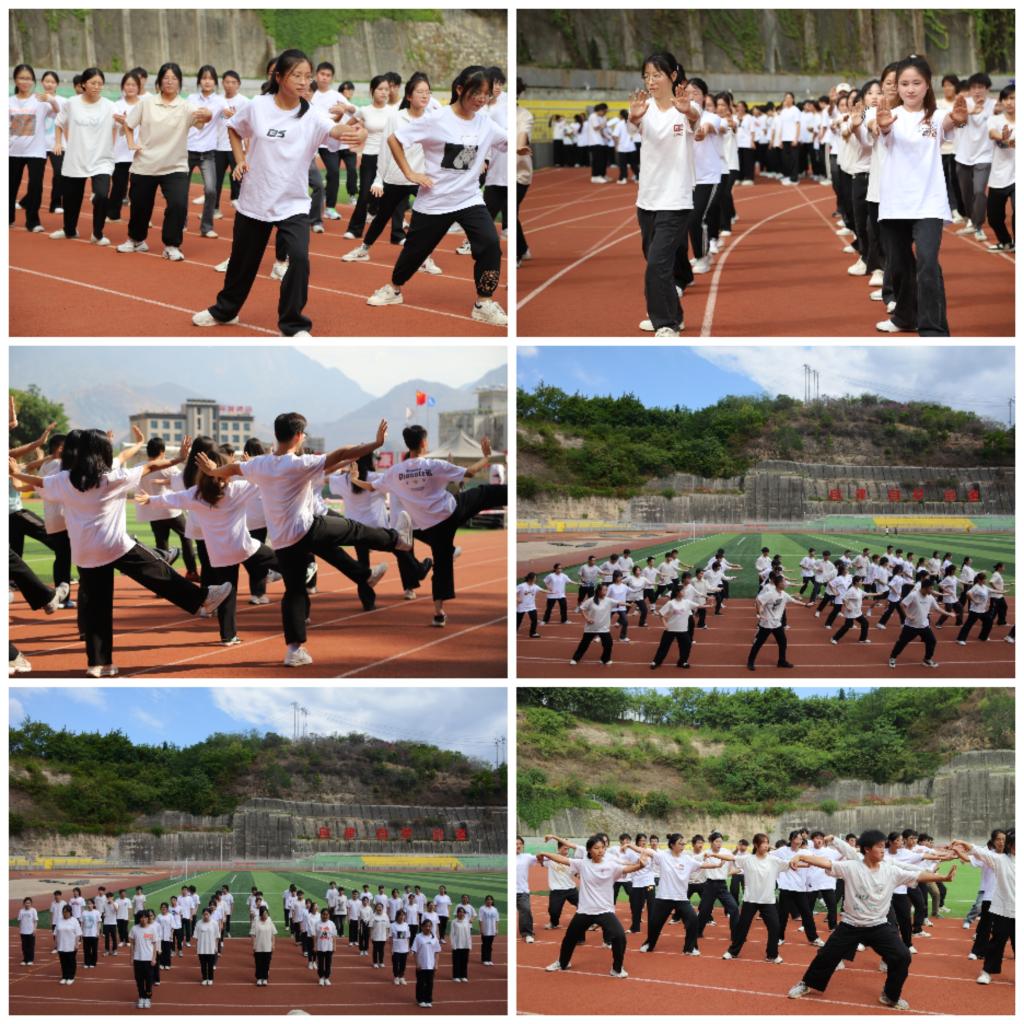 伴随着悠扬的背景音乐,参赛选手们缓缓起势,迈步平稳,展现柔韧之美,又蕴含刚劲之力。参赛选手们全神贯注,将太极拳的舒展大方、刚柔并济展现出来,充分展示学生青春风采。评委们根据参赛队伍着装整齐度、动作整齐度以及熟练程度打分。