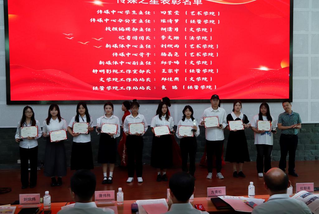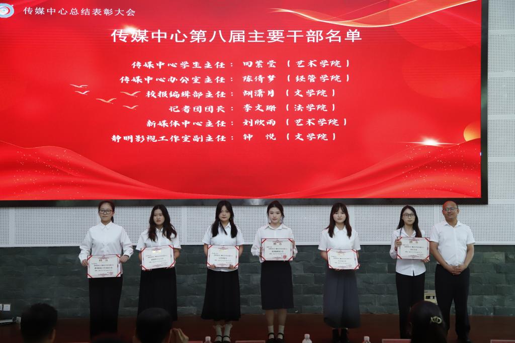 会议表彰了传媒中心优秀指导教师、传媒之星和优秀传媒组织,为传媒中心第八届主要干部颁发聘书。