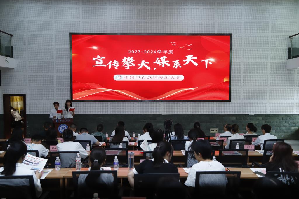 6月12日下午,我校传媒中心2023-2024学年度总结表彰大会在图书馆学术报告厅举行,党委常委、副校长、党委宣传部部长朱云生出席会议并讲话。学工部、团委负责人,各二级工作站指导老师、学生代表,校级学生组织负责人,党委宣传部全体成员,传媒中心全体委员,第六届“静明”大学生网络文化节获奖人员参加会议。