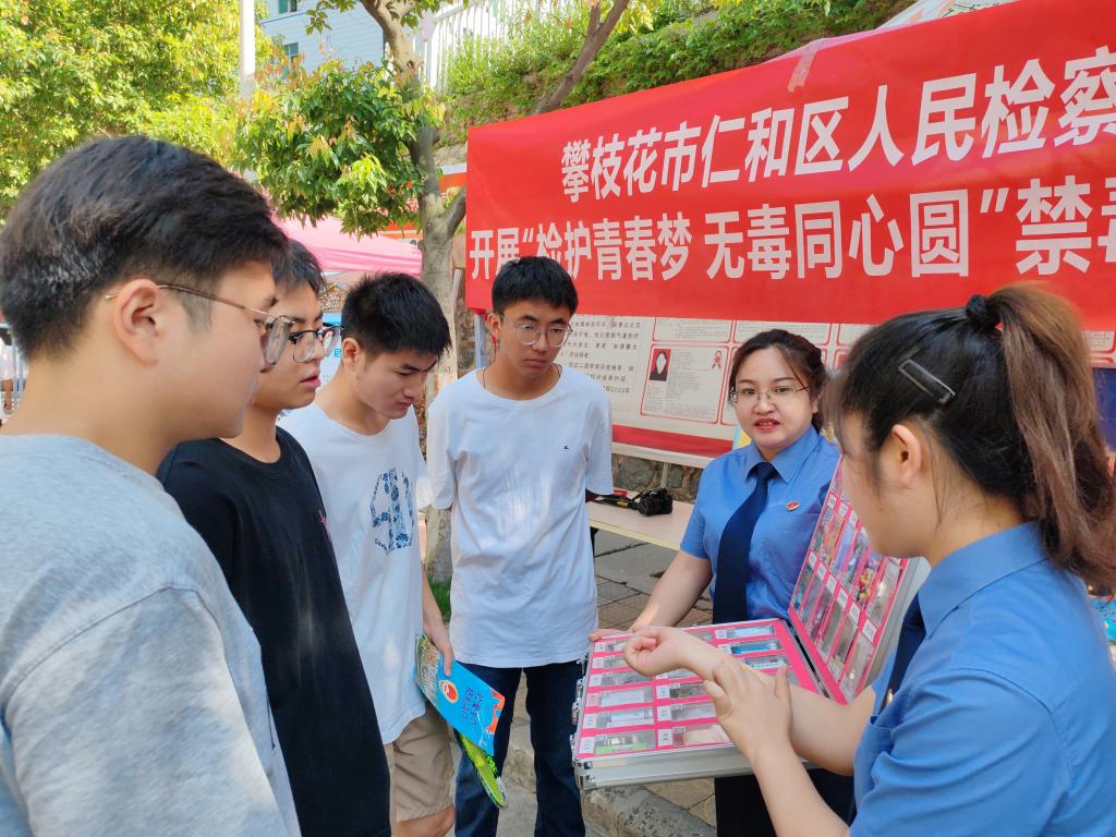 为加强青少年毒品安全教育,提高青年学生的自我保护意识。 619日上午,攀枝花市仁和区人民检察院走进我校开展“检护青春梦,无毒同心圆”禁毒宣传活动。