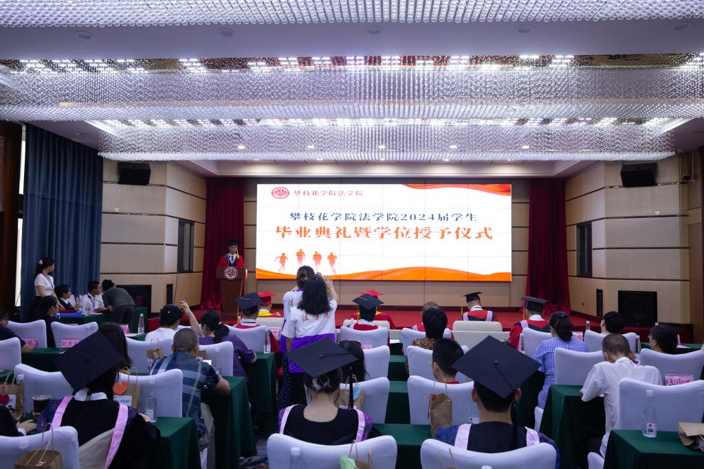 典礼上,法学院党委副书记(主持工作)张琳宣读《攀枝花学院学位评定委员会关于2024届本科毕业生的授位决议》;副书记张波宣读《关于聘任王彬等4名同学担任攀枝花学院法学院2024届毕业生校友联络员的决定》和《四川省教育厅关于公布2024届四川省优秀大学毕业生认定结果的通知》。