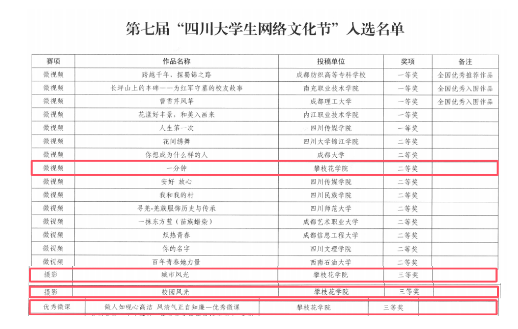 近日,由中共四川省委教育工作委员会、中共四川省委网络安全和信息化委员会办公室主办的第七届四川大学生网络文化节和四川高校网络教育优秀作品推选展示活动遴选结果揭晓,我校师生创作的网络文化作品荣获二等奖1项,三等奖3项。
