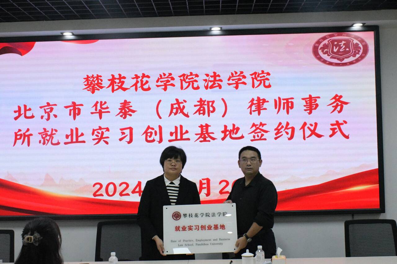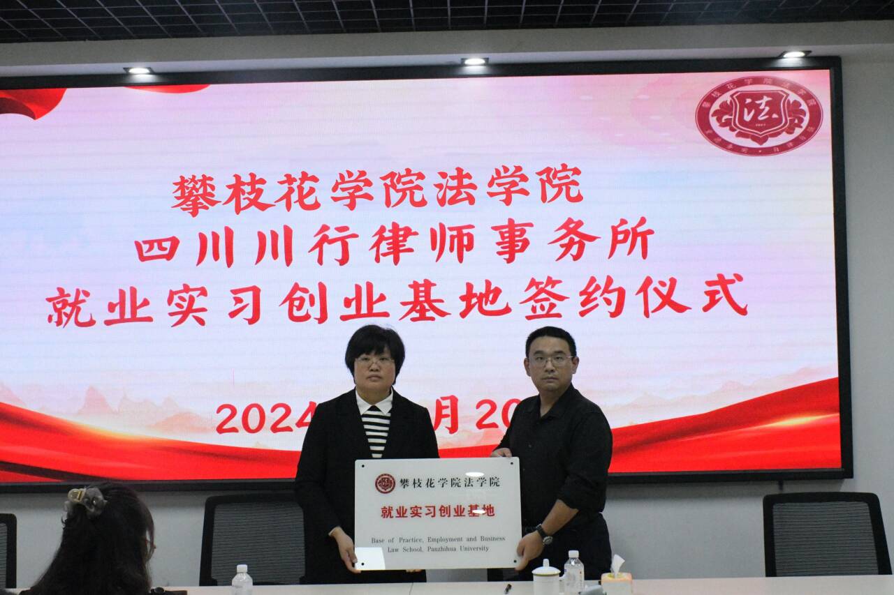 为持续深化产教融合,进一步做好学生实习就业基地实践工作,提高法学院学生实习实践能力。11月20日上午,法学院在凌云楼3楼会议室举行就业实习创业基地授牌仪式,四川川行律师事务所执行主任、北京市华泰(成都)律师事务所副主任张晋嵩与我院签订就业实习创业基地协议,法学院党总支副书记(主持工作)张琳主持会议。