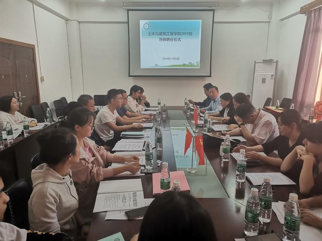 11月6日下午17:00,土木与建筑工程学院2019级导师、朋辈导师聘任仪式在励志楼二楼会议室举行,学院党委书记湛红艳,院长助理谢冰莹,各科室主任,2019级学生辅导员,2018级学生导师代表,2019级学生导师,2019级学生朋辈导师及2019级各专业班级学生干部参加了聘任仪式。会议由学生科科长邓勇军主持。
