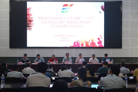 大会宣读了《关于表彰攀枝花学院2018年暑期“三下乡”社会实践先进集体、优秀团队、优秀指导老师和优秀个人的决定》、《关于印发<攀枝花学院2019年大学生暑期“三下乡”社会实践活动暨“思想政治理论课”综合实践教学实施方案>的通知》、《关于开展2019年度“逐梦计划”——四川大学生社会实践活动的通知》,与会嘉宾为受表彰的优秀集体和个人颁奖,为2019年暑期社会实践团队授旗。