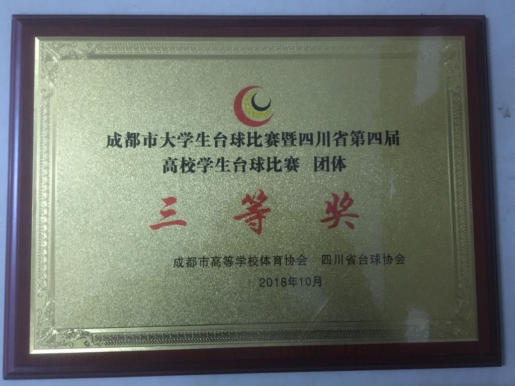 10月28日,2018年成都市大学生台球比赛暨四川省第四届高校学生台球个人及团体赛在电子科技大学清水河校区落下帷幕。经过全省十六个高校队伍的激烈角逐,我校数计学院组建队伍荣获团体赛三等奖。