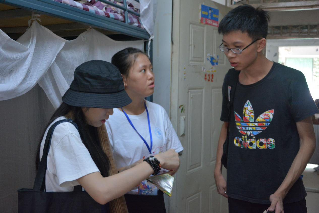 | 志愿者带领新生前往寝室 |