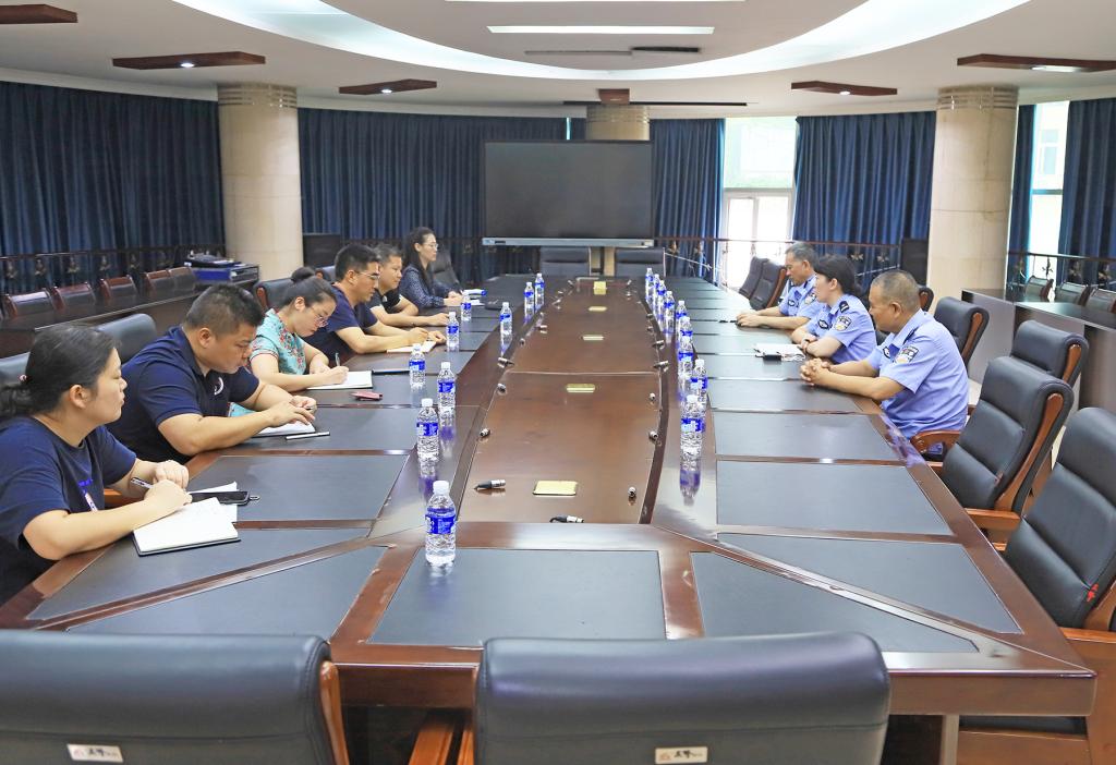 为进一步加强警校联动,全面落实“一校一警”制度,9月8日上午,我校所在辖区临江路派出所相关负责人和两名驻校民警到校接洽驻校工作。派出所民警一行人参观校园警务室,熟悉了解了工作场地和环境,并与学校保卫部(处)负责人及相关工作人员在三楼会议室进行了工作交流。