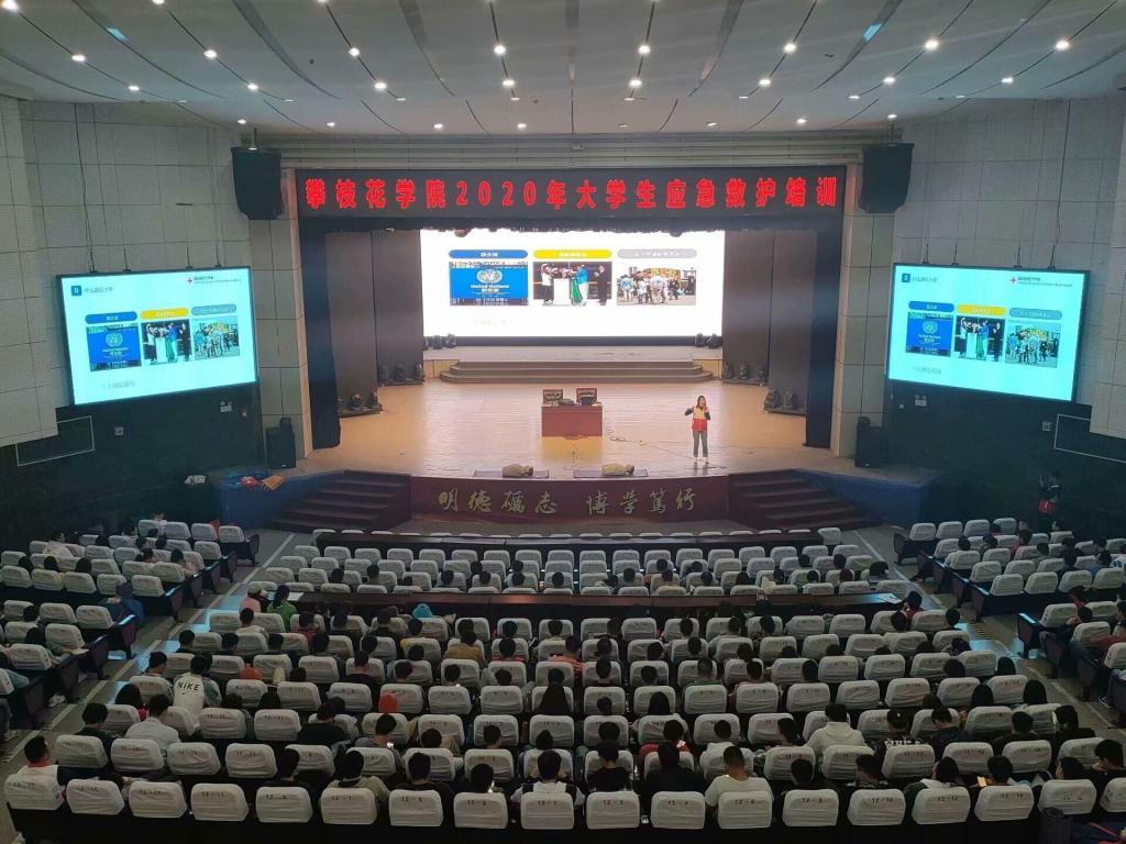 为健全校园应急救援体系,弘扬人道、奉献、博爱的红十字会精神,11月期间,学校联合攀枝花市红十字会针对全体2020级学生在攀枝花学院会堂举行了4场大学生应急救护培训讲座。培训讲座由学生处主办,医学院承办。