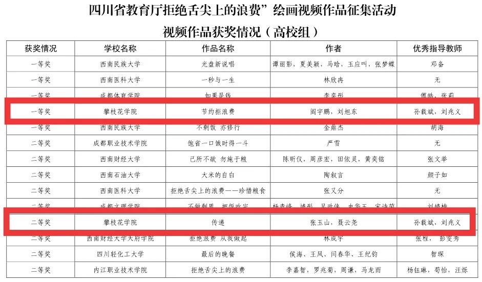 【攀大学子】我校在四川省“拒绝舌尖上的浪费”绘画视频作品征集活动中获得佳绩