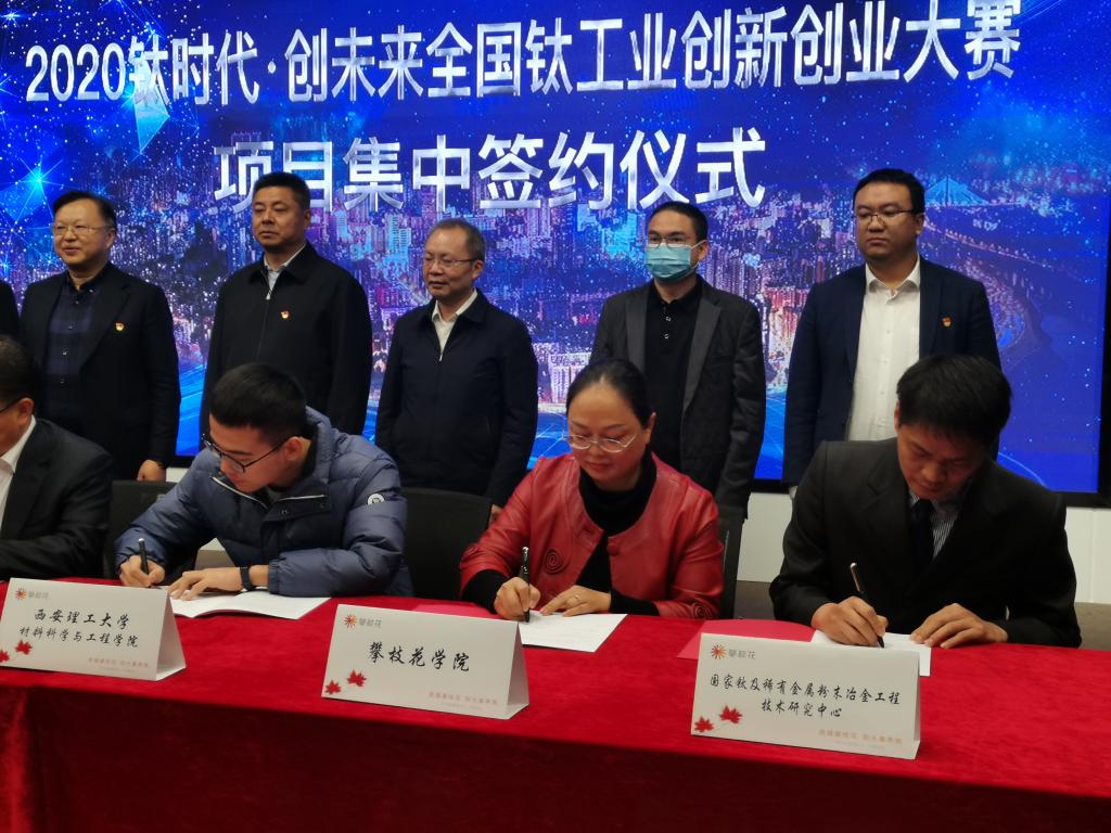 1226日,我校与国家钛及稀有金属粉末冶金工程技术研究中心在2020“钛时代•创未来”全国钛工业创新创业大赛现场——攀枝花市奥林匹克双创中心路演大厅达成合作协议,共建国家钛中心攀枝花基地与产教融合实践教学基地。