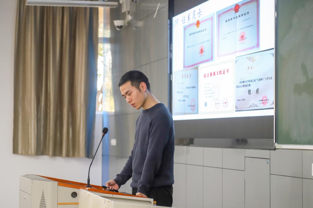 艺术学院17级产品设计专业胡坤平以“服务担当彰显雷锋精神,自律向上讲好青春故事”为题首先开讲。他以自己曾先后在学生国防教育协会外联部和产品设计学会宣传部的学习、工作经历,呼吁大家要学习雷锋“一颗心”的傻子精神、“一块砖”的敬业精神、“一辈子”的奉献精神以及“钉子精神”。