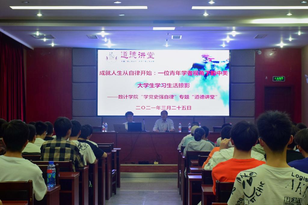 3月25日,数学与计算机学院(大数据学院)组织开展了道德讲堂活动。本次讲堂邀请到清华大学、美国哥伦比亚大学硕士研究生徐鉴劲作主题讲座,数计学院党政领导班子、师生代表100余人参加了活动。